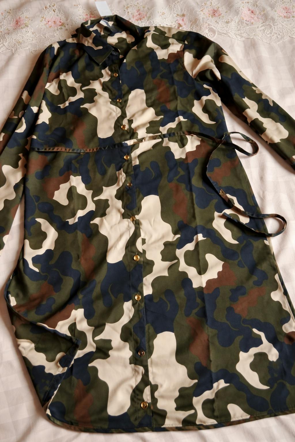 The camouflage print adds a trendy, edgy touch, while the classic collared neckline gives it a smart-casual appeal. Featuring roll-up sleeves, this tunic allows you to switch effortlessly between relaxed and polished looks.
